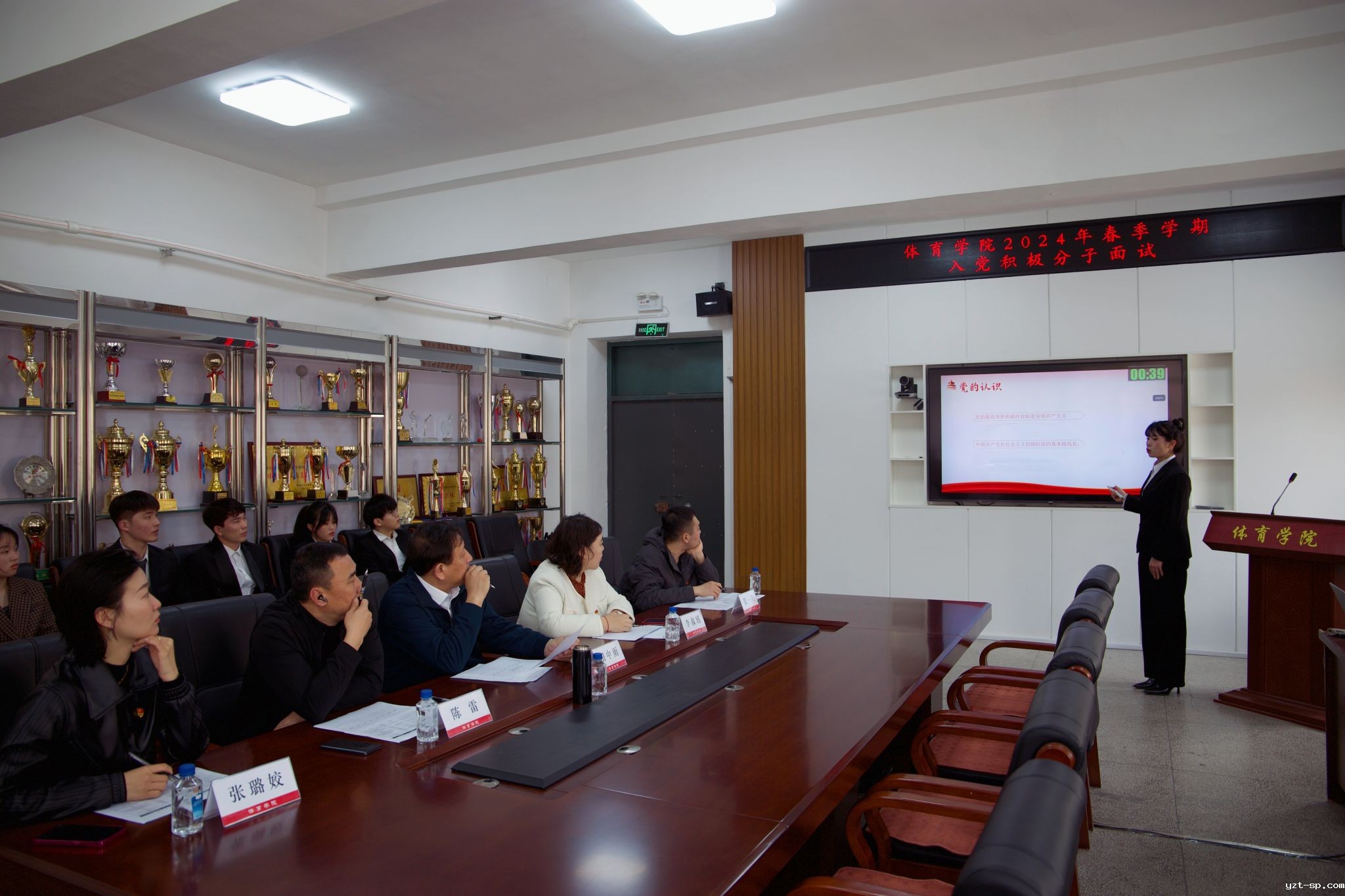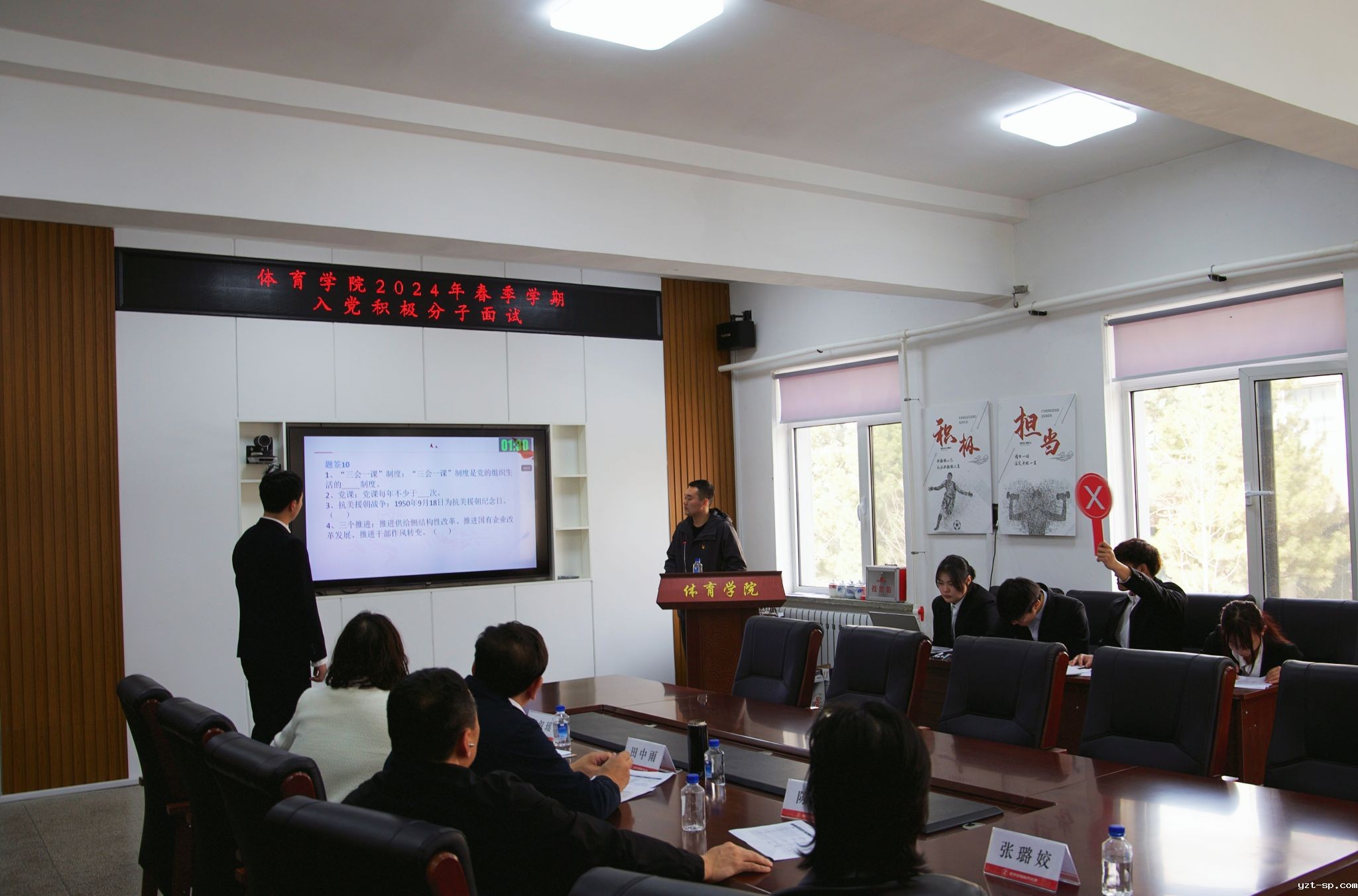 为切实保证新发展学生党员质量,保持党组织的先进性和纯洁性,提高党的战斗力,3月29日下午13时,体育学院在学院会议室举办了首次入党积极分子选拔面试。院党委书记田中雨、党委副书记李叙瑶、副院长陈雷、团委书记张一兵、科研科科长张璐姣担任面试评委。